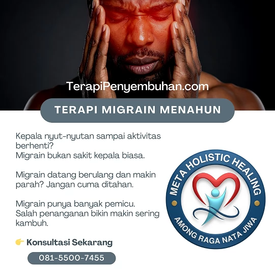 π₯ Jangan biarkan migrain menguasai hari-hari Anda. Segera konsultasi Terapi Migrain sekarang dan rasakan tubuh kembali ringan, kepala tenang, dan nyeri perlahan menghilang.